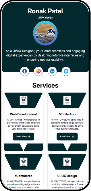 A digital visiting card is a modern, online alternative to traditional business cards, enabling you to showcase your contact details, professional background, and key information in a streamlined, shareable format. Designed for seamless networking, it allows you to easily connect with potential clients and expand your professional reach.